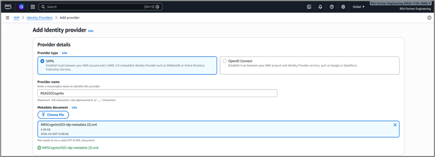 AWS Amazon Cognito - SAML Relying Party Configuration - RSA Ready Implementation Guide