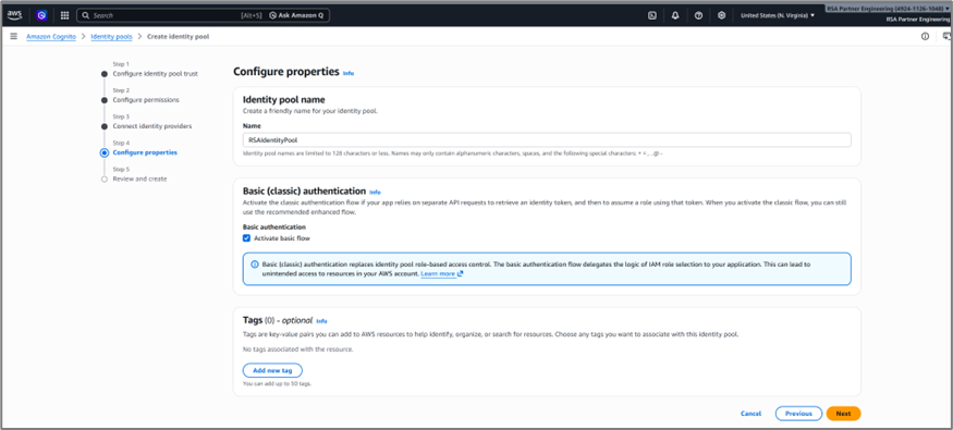- Under Configure properties, provide the Identity pool name as shown in the following image.