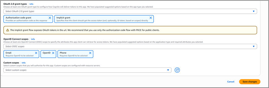 - In the OAuth 2.0 grant types section, select Implicit grant.