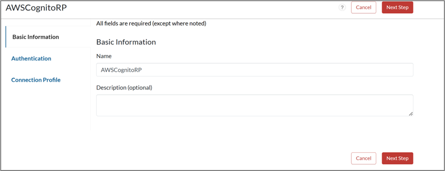 - On the Basic Information page, enter the name for the application in the Name field.