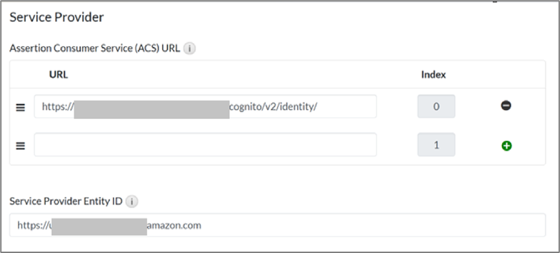 - Click Choose File and import the metadata downloaded from AWS Amazon Cognito to populate the ACS URL and Service Provider Entity ID.