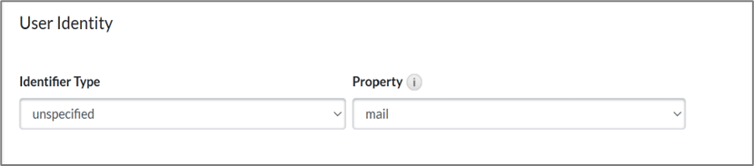 - Scroll down to the User Identity section and select the following values: