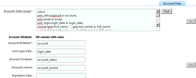 For example: In ADC configuration, under ‘Mapping for Accounts Attributes’ section, there is no DB Column mapped to ‘Account Disabled’ attribute as you can see below:
