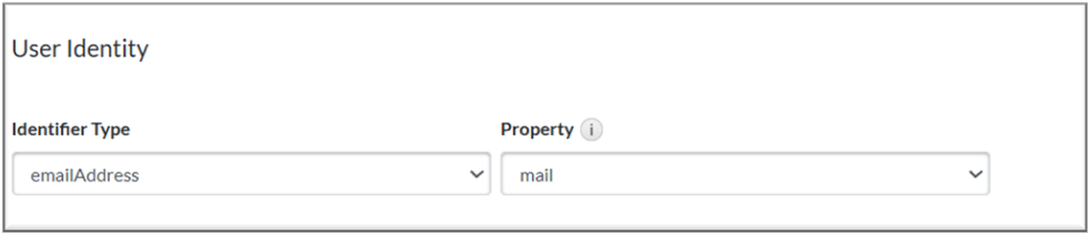 - Under the User Identity section, select the following values: