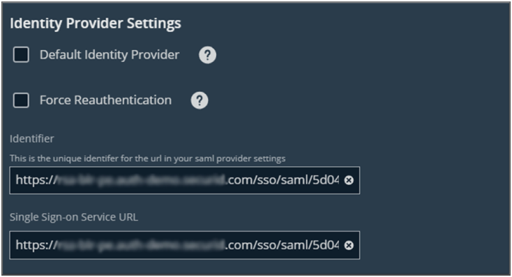 - Identifier: Enter the Identity Provider URL copied from the CAS configuration.