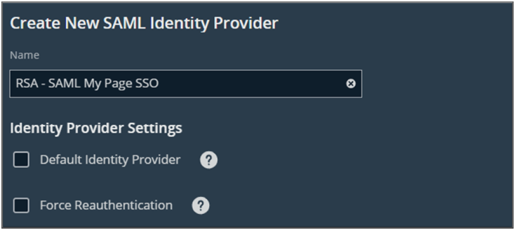 - Provide a name for the new SAML identity provider (IdP).