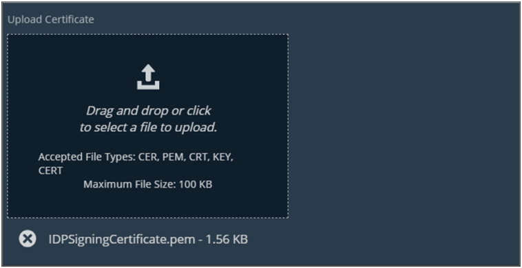 - Current Identity Provider Certificate: Upload the identity provider certificate downloaded during CAS configuration.