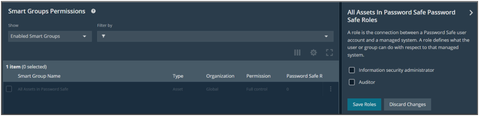 - Choose the required Password Safe roles for the selected user group, and then click Save Roles.