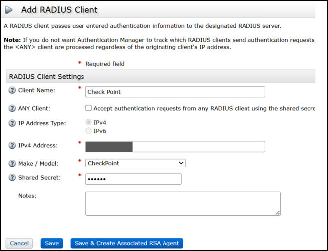 - IPv4 Address: Enter the IP address of the Radius client.