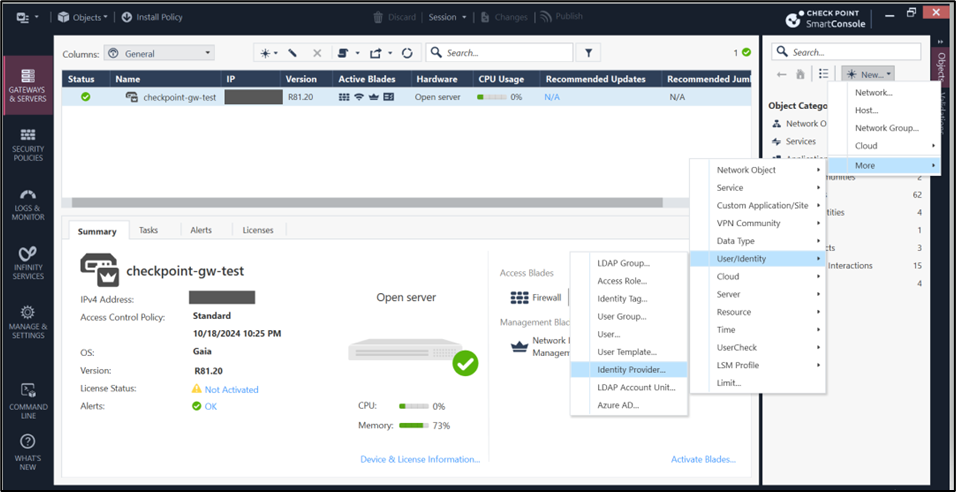 - In the Gateway & Servers tab, click New > More > User/Identity > Identity Provider.