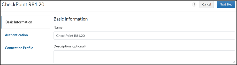 - On the Basic Information page, enter the name for the application in the Name field and click Next Step.