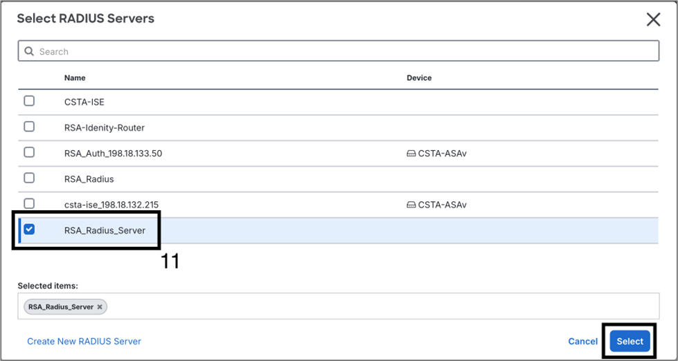 - Select the newly created RADIUS Server within the RADIUS Server Group.