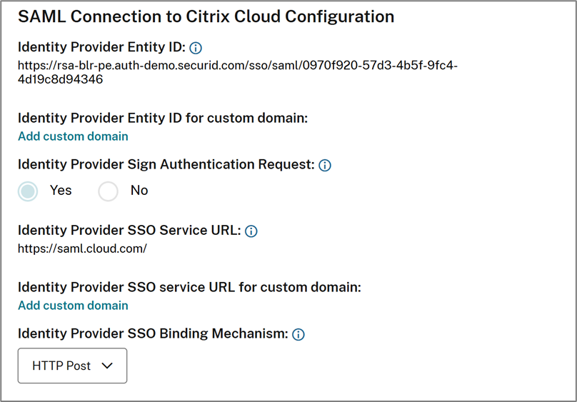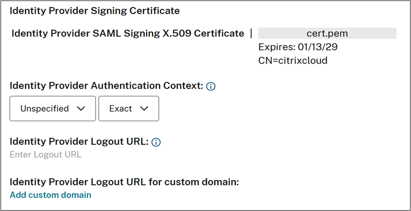 - Scroll down to the Identity Provider section and make a note of the Identity Provider URL. This is required for the Citrix Cloud configuration.