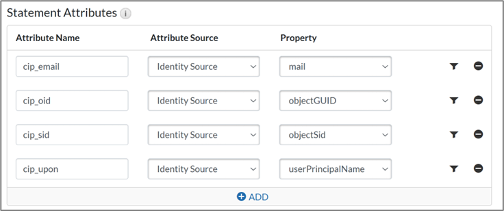 - Attribute Name: cip_upn, Attribute Source: Identity Source, Property: userPrincipalName