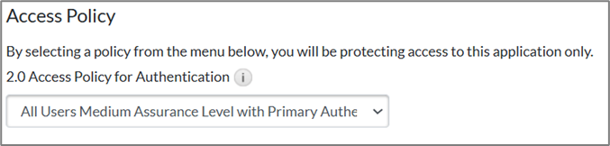 - In the Access Policy section, choose the policy for the application in the drop-down list.