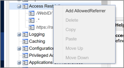 - In the Options pane, right-click Access Restriction, and then select Add AllowedReferrer.