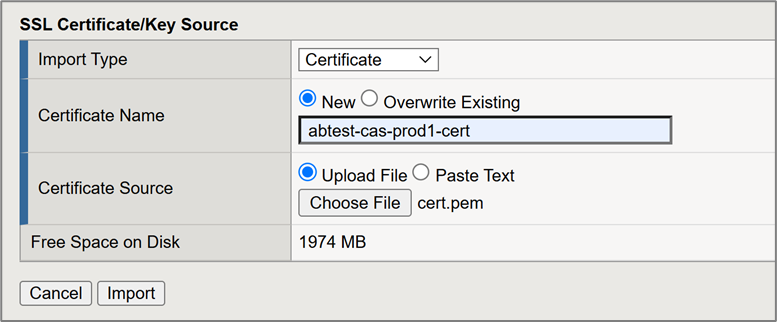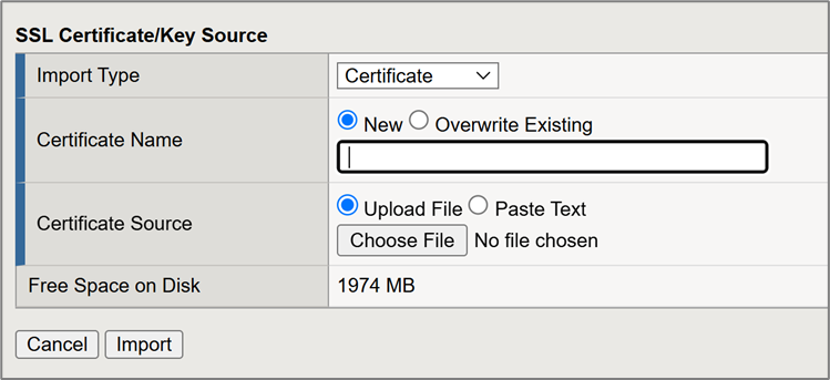 - In the Import Type drop-down list, select Certificate.