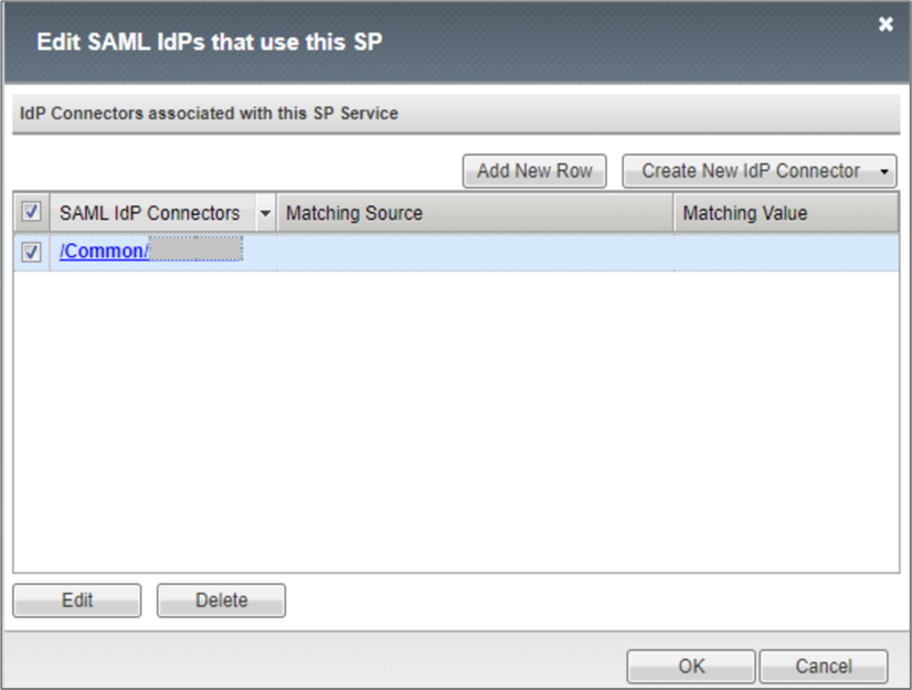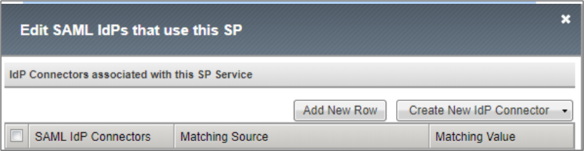 - On the Edit SAML IdPs that use this SP window, click Add New Row.