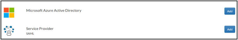 - On the Relying Party Catalog page, click Add for Service Provider SAML.