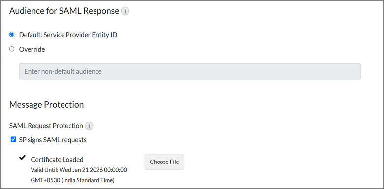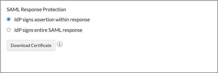- For SAML Response Protection, choose IdP signs entire SAML response.