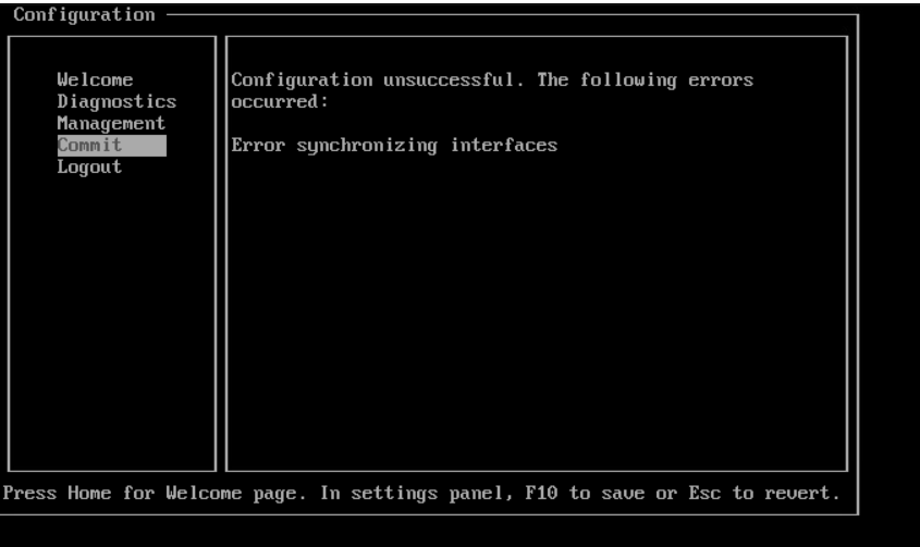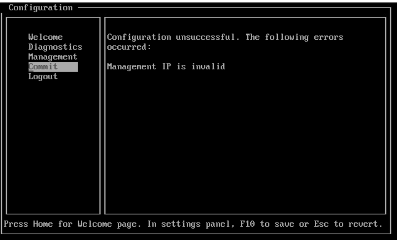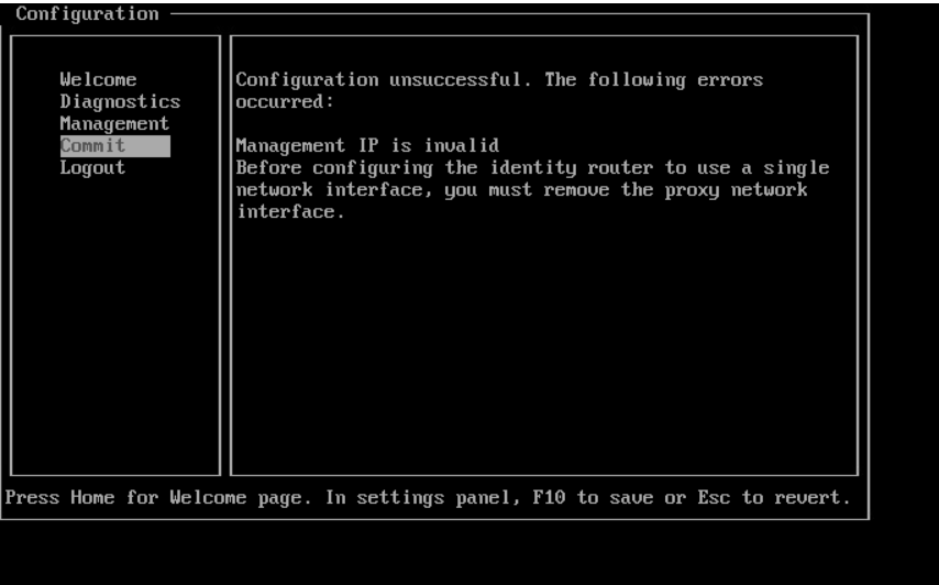 - Management IP invalid, and 2 NICs added, but trying to configure 1NIC