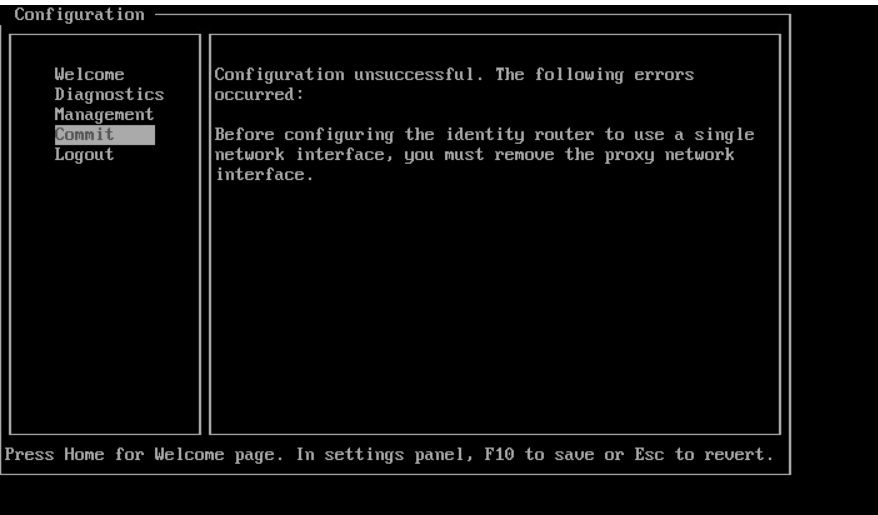 Failed to Install the Identity Router Virtual Appliance for VMware after committing the network configurations with an error "Error updating httpd.conf".