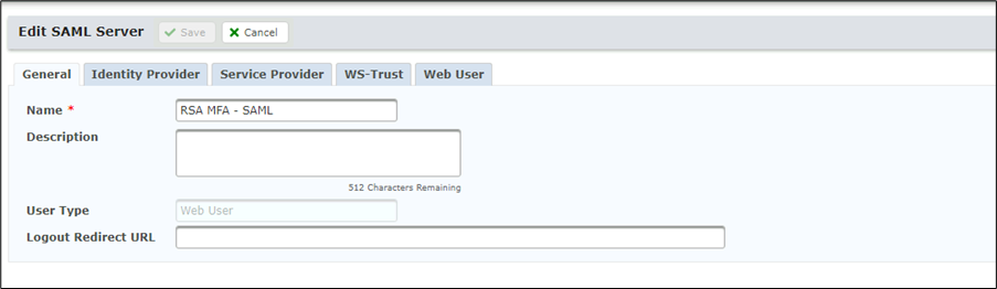 - In the Entity ID field enter an original string, this can be any value and MUST match the Service Provider Entity ID value you entered in RSA Cloud Authentication Service configuration.
