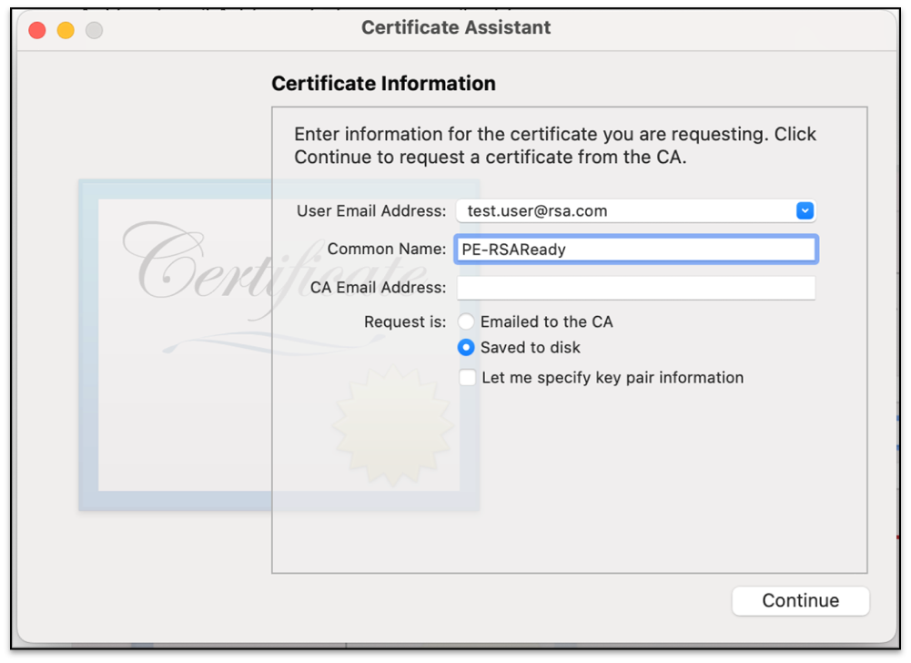 - Select Keychain Access > Certificate Assistant > Request a Certificate From a Certificate Authority.