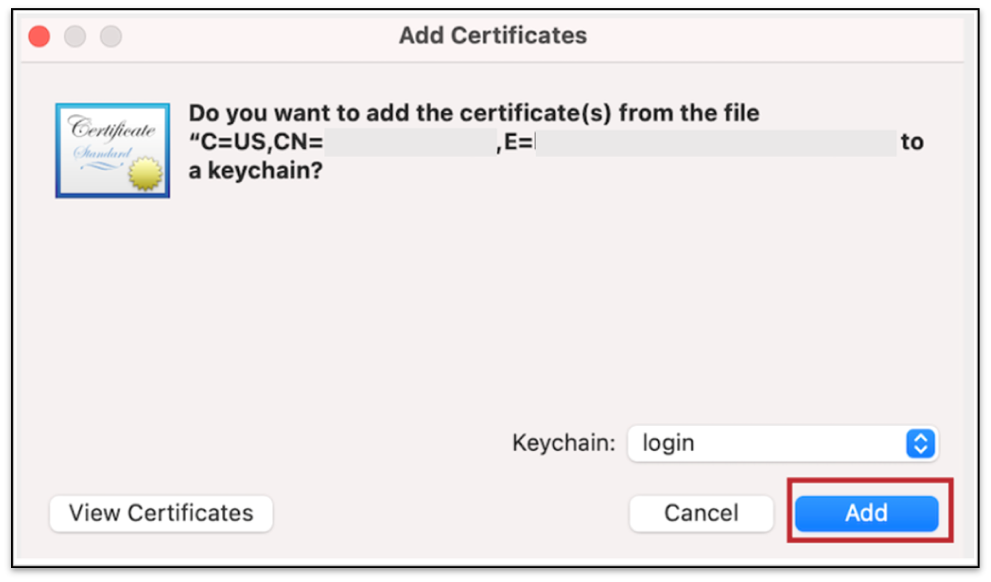 - Select login from the Keychain dropdown menu, and then click Add.