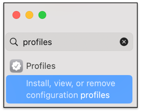 - In System Settings, search for Profiles and click the result.