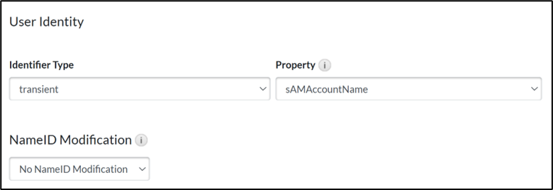 - Go to the User Identity section and select the following details: