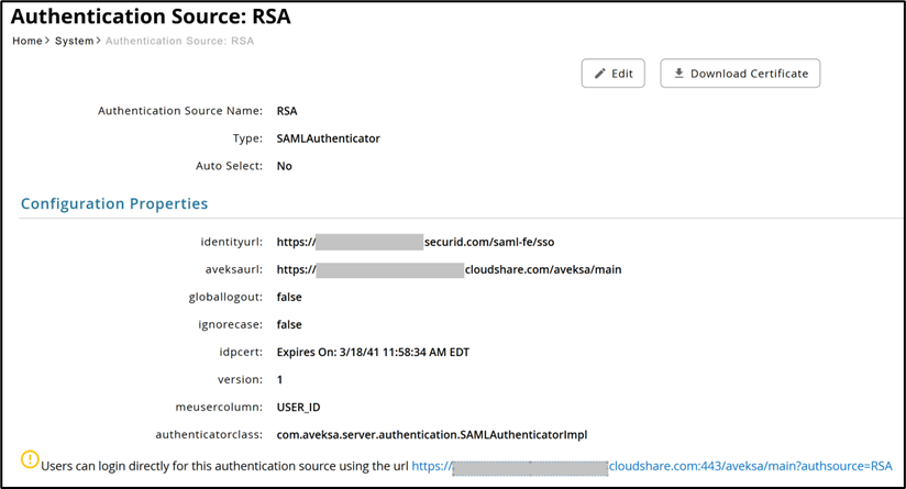 - Download the certificate to upload in RSA configuration.