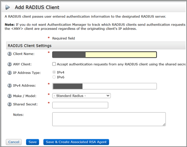 1. Sign in to your RSA Security Console and click RADIUS > RADIUS Clients > Add New.