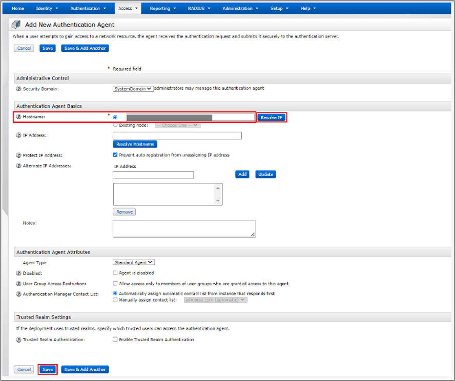 - Navigate to Access > Authentication Agents and click Add New.
