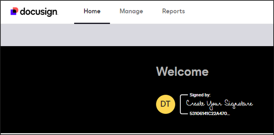 - After successful authentication, the user will be redirected to DocuSign home landing page.