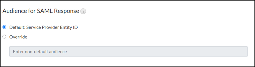 - In the Audience for SAML Response section, keep the Audience for SAML Response unchanged as it remains the default setting.