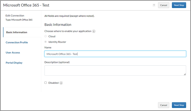 - On the User Access page, select the access policy the identity router will use to determine which users can access the Microsoft O365 service provider and click Next Step.