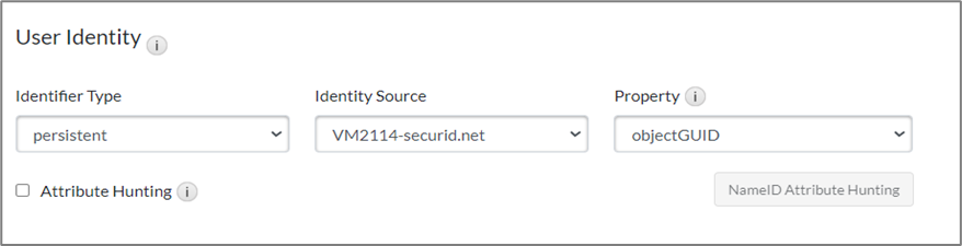 - Under the User Identity section, configure Identifier Type, Identity Source, and Property as follows: