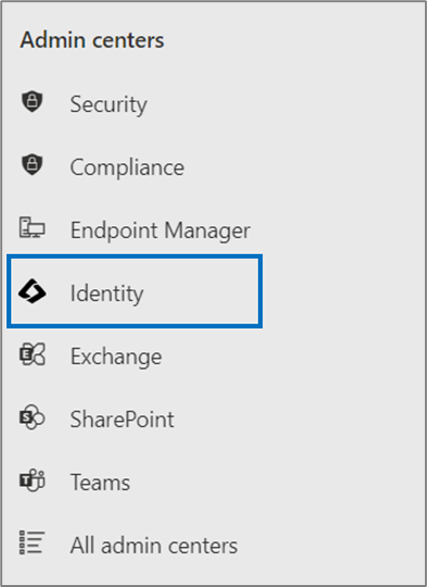 - After your domain is verified, click Identity in the navigation menu on the left. The Microsoft Entra admin center page will open automatically.
