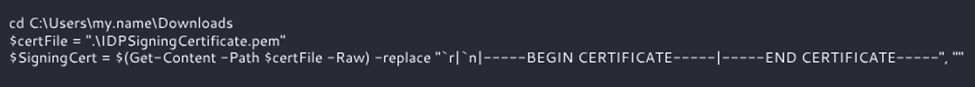 - Use these PowerShell commands to process the certificate and set the $SigningCert variable: