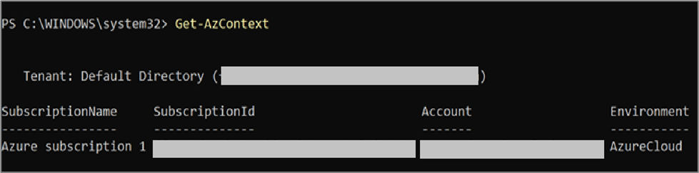 If the “Unable to acquire token for tenant…” error occurs, try reconnecting and then run the following command to check if the token is granted properly.