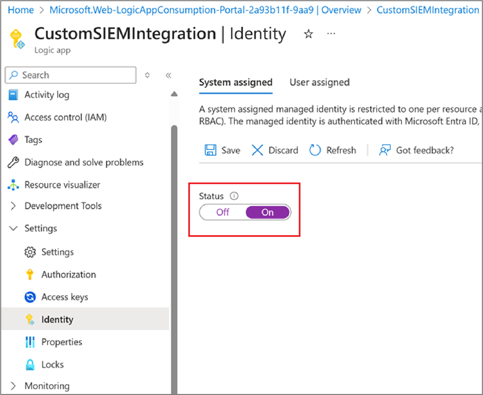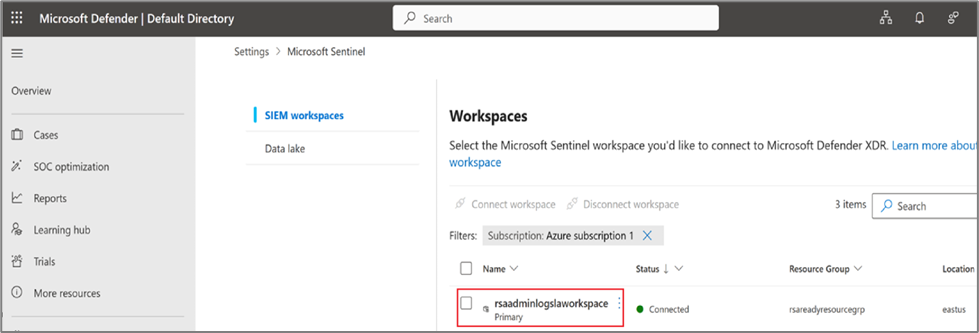 - In the left pane, click Settings and select Microsoft Sentinel.