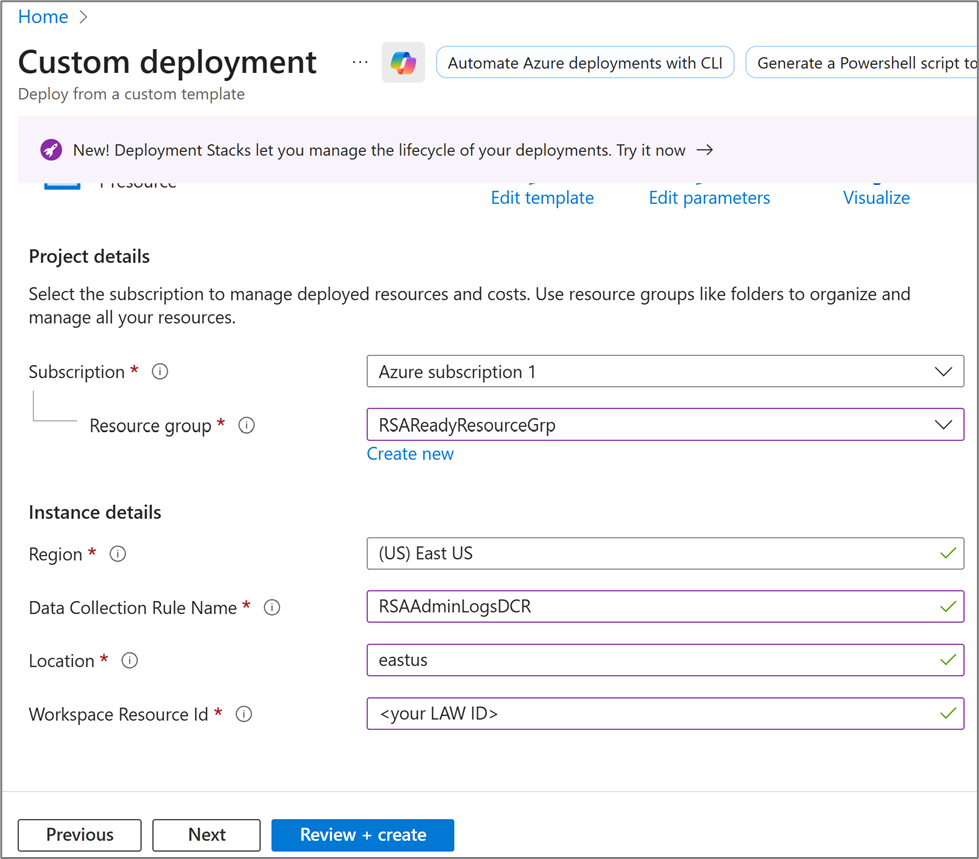 - Provide a Name. We have used “East US “across our deployment as the Region.