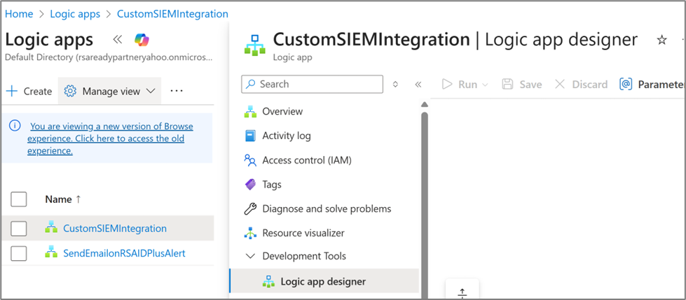 - Select the Logic app and then go to Development Tools > Logic app designer in the left pane.