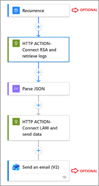 - There should always be a column named TimeGenerated of type datetime. The rest of the columns have values coming from RSA.