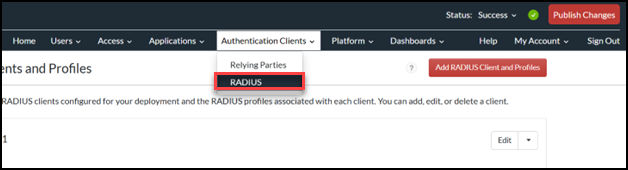 - Under Advanced Authentication, use the Select Authenticator pulldown to select Create New Authenticator and if needed, click manage authenticators to configure the new RADIUS Host.