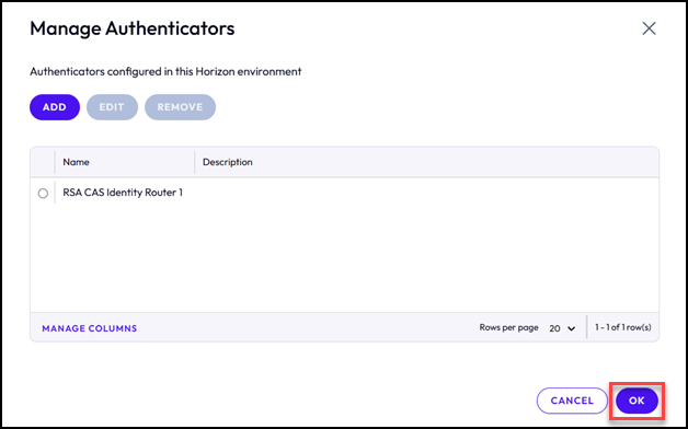 - Repeat step 10 for each Horizon 8 Connection Server you wish to enable for RSA SecurID.
