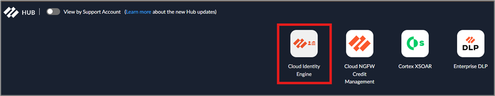 - Sign in to https://apps.paloaltonetworks.com/hub and choose Cloud Identity Engine.