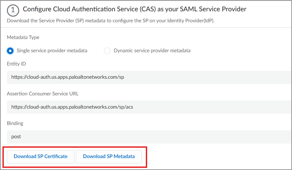 - Download the SP Certificate and SP Metadata, which will be used in the RSA configuration.