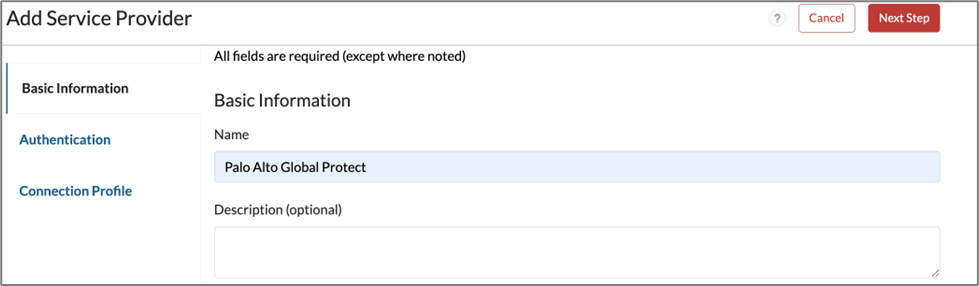 - Scroll down to the Service Provider section. The following fields should be in the following format: